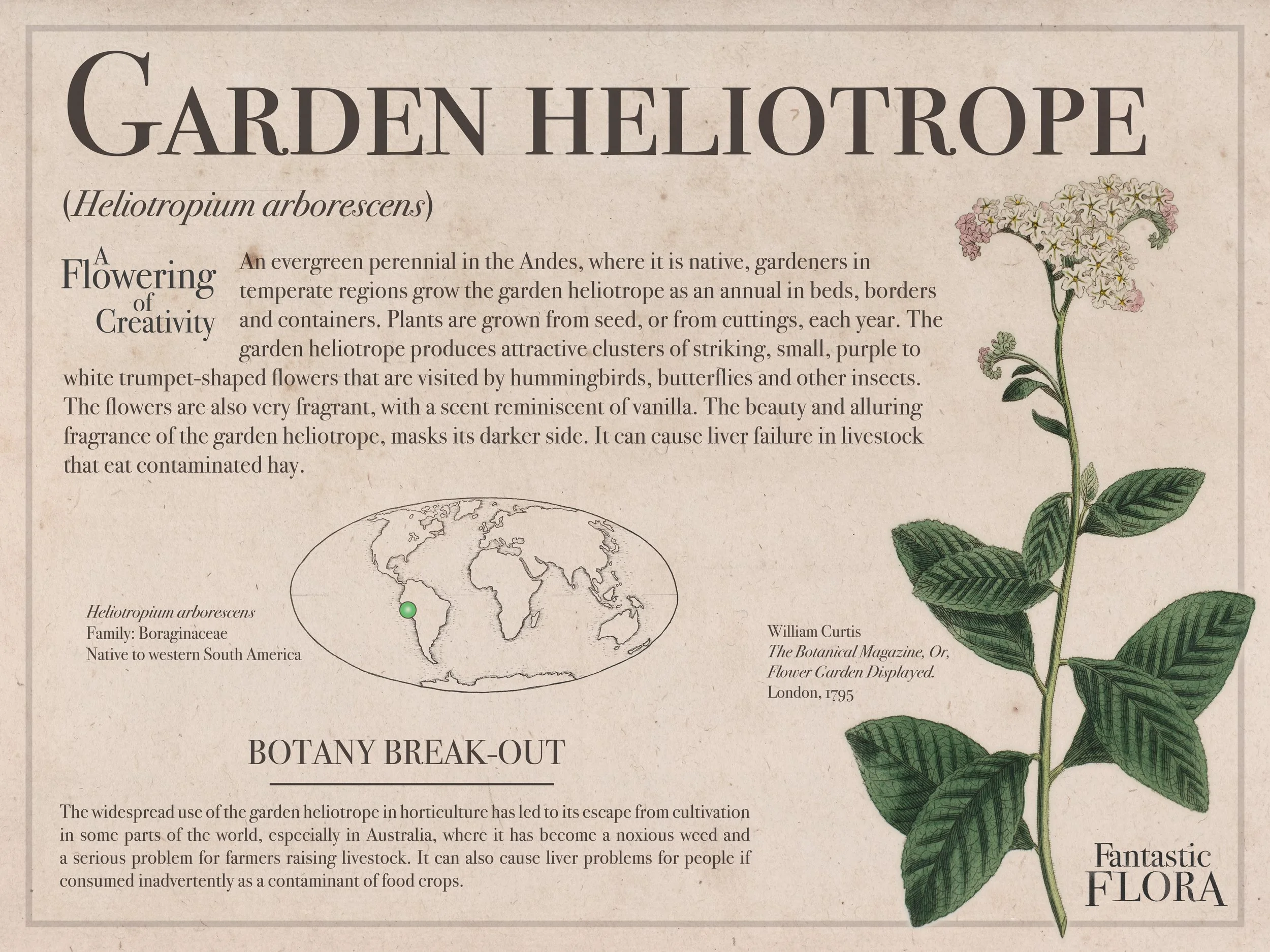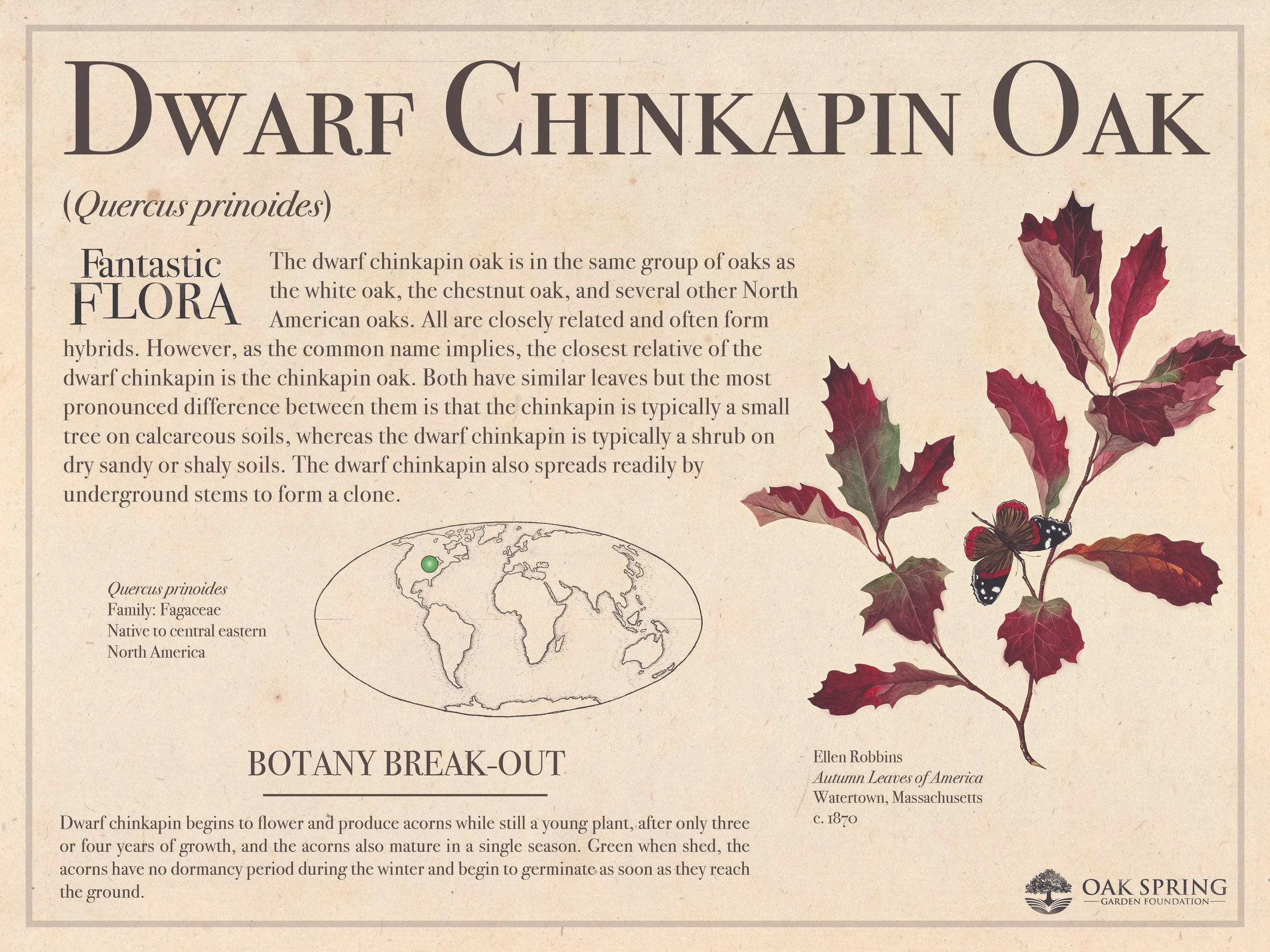 Every Friday, we release another page from our “Fantastic Flora” collection on this website. Each page features an image from the Oak Spring Garden Library along with some basic, and we hope interesting, information. Schools, environmental organizations, botanic gardens and others can also curate their own physical exhibits by applying to download high-resolution print-ready poster files for free. Click below to learn more and apply to curate your own exhibit.